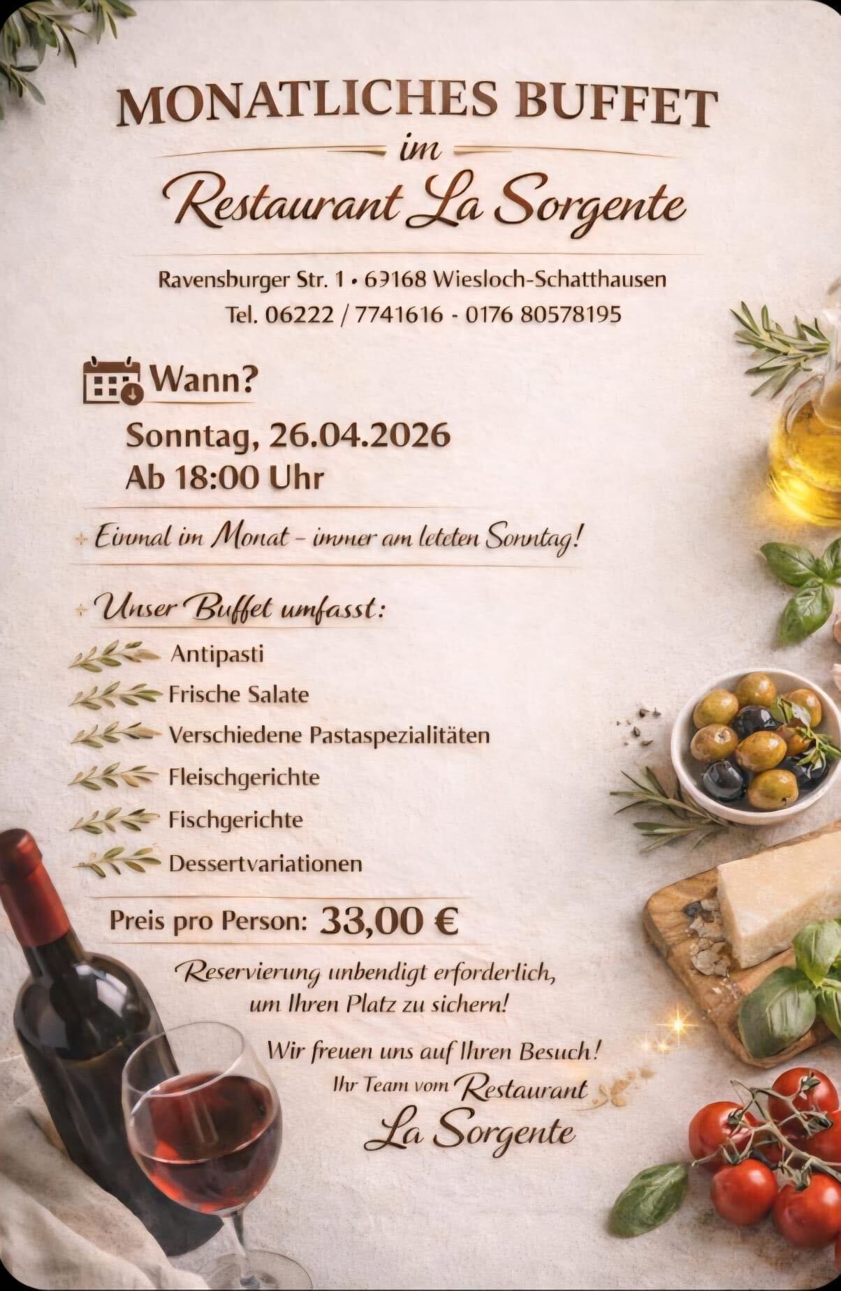Das Essen war ausgezeichnet und wir haben das La Sorgente schon weiter empfohlen.